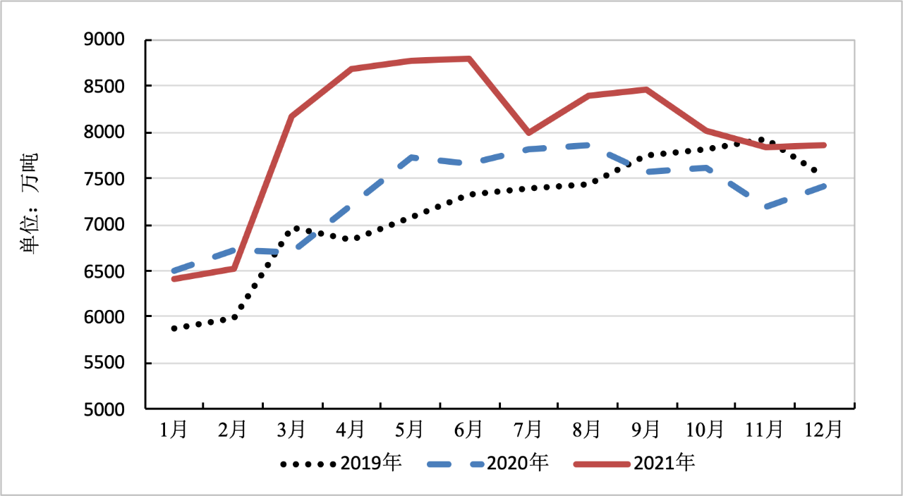 ▲近三年國產(chǎn)鐵礦石月度產(chǎn)量對比