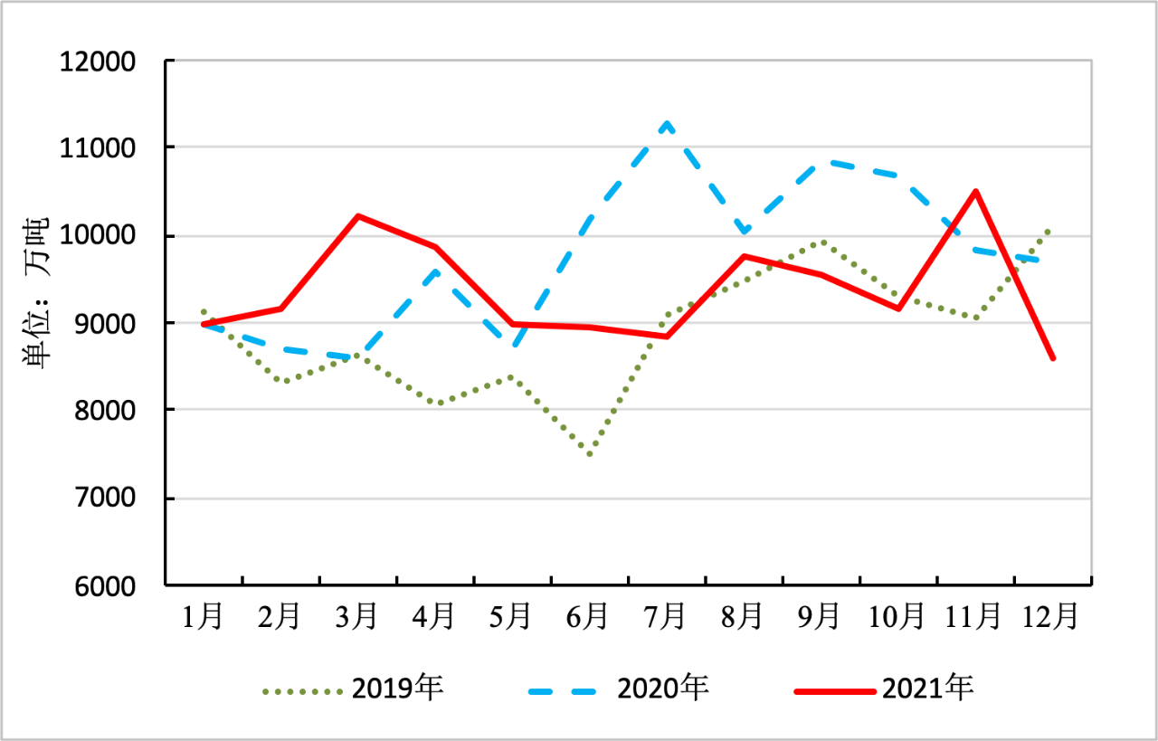 ▲近三年我國鐵礦石月度進口量對比