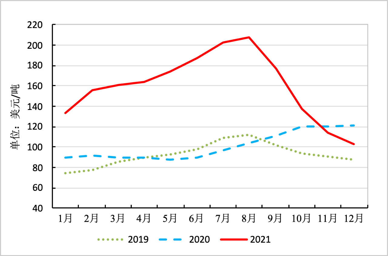 ▲近三年進口鐵礦月度平均到岸價格對比