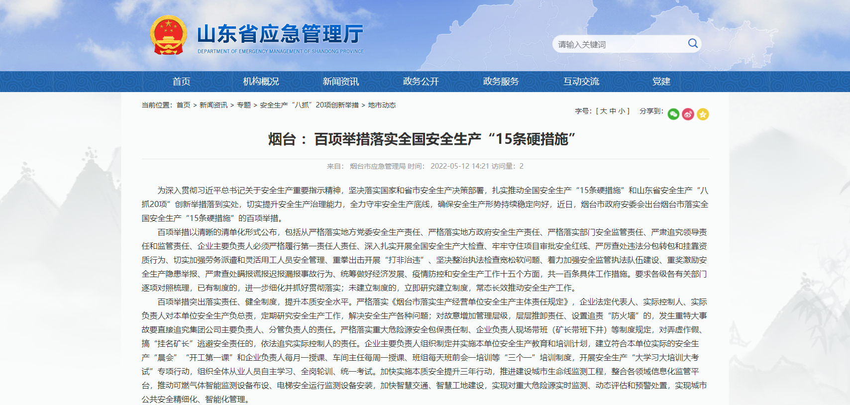 煙臺(tái) :百項(xiàng)舉措落實(shí)全國安全生產(chǎn)“15條硬措施”