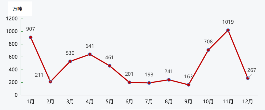 根據(jù)對重點砂石企業(yè)監(jiān)測顯示,重點砂石企業(yè)在四季度日均出貨量高位運行,其他時間均保持低位。一季度,春節(jié)假期,砂石礦山廠停工,疊加需求不足等因素,重點砂石企業(yè)日均出貨量低位運行;二季度,隨著疫情的好轉(zhuǎn),砂石運輸條件的改善,重點砂石企業(yè)日均出貨量有所回升,4月升至641萬噸/日;三季度,疫情反復(fù)、施工項目進(jìn)度緩慢影響砂石需求,重點砂石企業(yè)日均出貨量持續(xù)回落,9月降至163萬噸/日;四季度,隨著工程旺季的到來,砂石需求回升,重點砂石企業(yè)日均出貨量達(dá)到年度最高值,11月達(dá)到了1019萬噸/日。