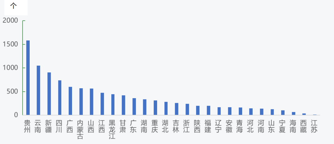 截至2021年年底,從各。ㄗ灾螀^(qū)、直轄市)砂石礦山的分布情況來看,貴州、云南砂石礦山數(shù)量最多,分別為1582個、1050個;新疆、四川、廣西、內(nèi)蒙古、山西砂石礦山數(shù)量為500~1000個;江西、黑龍江、甘肅、廣東、湖南、重慶砂石礦山數(shù)量為300~500個;湖北、吉林、浙江、陜西、福建、遼寧、安徽、青海、河北、河南、山東、寧夏砂石礦山數(shù)量為100~300個;海南、西藏、江蘇砂石礦山數(shù)量均在100個以內(nèi);北京、天津、上海砂石礦山數(shù)量為0。
