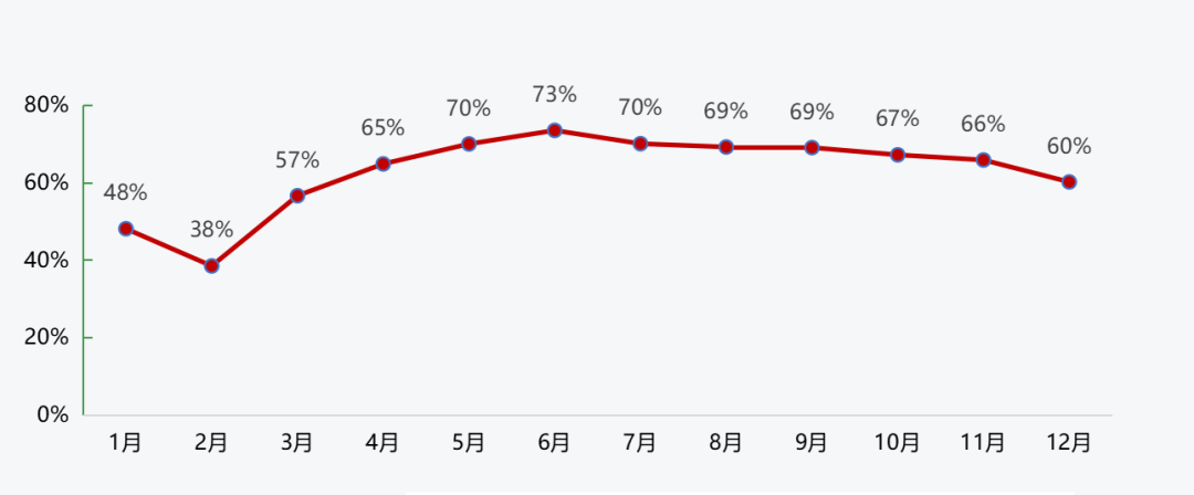 2022年砂石企業(yè)開機率和產(chǎn)能利用率走勢較為一致,均在年初、年尾出現(xiàn)回落,年中保持較高水平。一季度,受春節(jié)假期、雨雪天氣等影響,開機率、產(chǎn)能利用率均較低,2月更是分別降至38%、19%;二季度疫情逐漸緩解,三季度工程旺季到來,二、三季度開機率、產(chǎn)能利用率均保持較高水平,6月更是達(dá)到了年度最高水平,分別升至73%、39%;進(jìn)入四季度,受到雨雪天氣到來以及疫情的反復(fù),雙重因素的影響導(dǎo)致開機率、產(chǎn)能利用率均出現(xiàn)回落,12月,分別降至60%、35%。