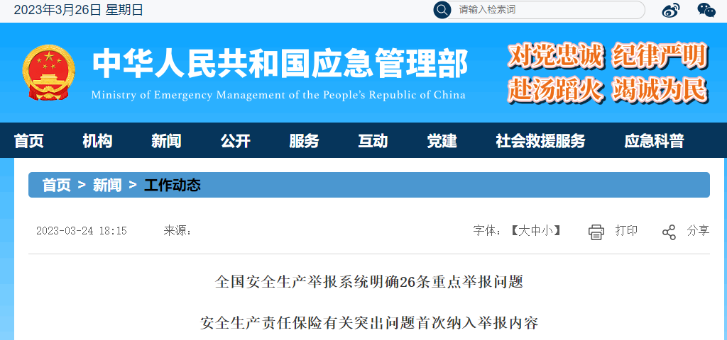 全國(guó)安全生產(chǎn)舉報(bào)系統(tǒng)明確26條重點(diǎn)舉報(bào)問(wèn)題
