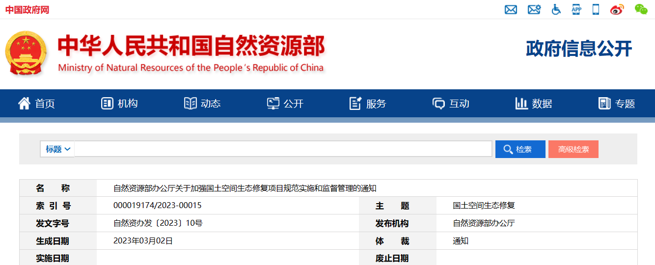 自然資源部辦公廳關(guān)于加強國土空間生態(tài)修復(fù)項目規(guī)范實施和監(jiān)督管理的通知