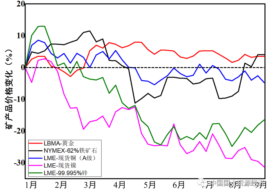 圖1 2023年1月—9月全球大宗礦產(chǎn)品價格變化