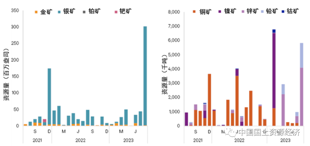 圖7 2021年7月—2023年8月全球礦業(yè)公司初始資源量公告