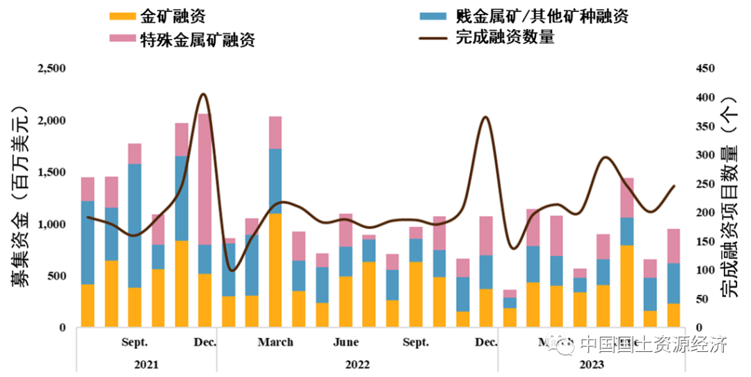 圖8 2021年7月—2023年8月全球初級和中級礦業(yè)公司融資情況