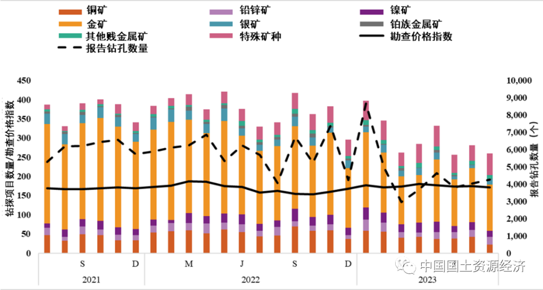 全球礦業(yè)公司鉆探項目數(shù)量和報告鉆孔數(shù)均處于較低水平。