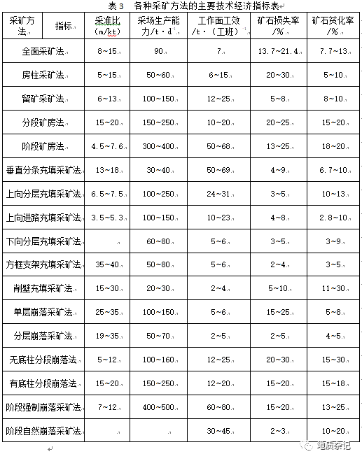 第一類(lèi),空?qǐng)霾傻V法。此法將礦塊劃分為礦房和礦柱,分兩步驟開(kāi)采。回采礦房時(shí)所形成的采空區(qū),可利用礦柱和礦巖本身的強(qiáng)度進(jìn)行維護(hù)。因此,礦石和圍巖均穩(wěn)固,是使用本類(lèi)采礦方法的基本條件。在回采礦房時(shí)期暫留礦石的留礦發(fā)也劃歸本類(lèi),是因?yàn)闀毫舻V石不能作為支撐圍巖的主要手段,且當(dāng)其放出后的一定時(shí)間內(nèi),仍靠礦柱維護(hù)采空區(qū)。因此,留礦不能作為獨(dú)立的地壓管理方法,不應(yīng)單分一類(lèi)。第二類(lèi),充填采礦法。本類(lèi)的大部分采礦方法,也是分為兩步驟進(jìn)行回采;夭傻V房時(shí),隨回采工作面的推進(jìn),逐步用充填料充填采空區(qū),防止圍巖片落,即用充填采空區(qū)的方法管理地壓。個(gè)別條件下,還用支架和充填料配合維護(hù)采空區(qū),進(jìn)行地壓管理。因此,礦石和圍巖穩(wěn)固和不穩(wěn)固,均可應(yīng)用本類(lèi)采礦法。 第三類(lèi),崩落采礦法。本類(lèi)采礦法為一個(gè)步驟回采,并且隨回采工作面的推進(jìn),同時(shí)崩落圍巖充滿(mǎn)采空區(qū),從而達(dá)到管理和控制地壓的目的。因此,崩落圍巖充滿(mǎn)采空區(qū),是應(yīng)用本類(lèi)采礦方法的必要前提。礦巖的穩(wěn)固性,對(duì)選擇采礦方法及地壓管理方法,均有很大的影響。根據(jù)礦石或巖石的穩(wěn)固程度,可分為以下五種情況:1. 極不穩(wěn)固的 是指掘進(jìn)巷道或開(kāi)辟采場(chǎng)時(shí),不允許有暴露面積,否則可能產(chǎn)生片幫或冒落現(xiàn)象。在掘進(jìn)巷道時(shí),需用超前支護(hù)方法進(jìn)行維護(hù)。2. 不穩(wěn)固的 在這類(lèi)礦石或巖石中,允許有較小的不支護(hù)的暴露空間,一般允許的暴露面積在50m²以?xún)?nèi)。3. 中等穩(wěn)固的 是指不支護(hù)的暴露面積為50~200 m²。4. 穩(wěn)固的 允許不支護(hù)的暴露面積為200~800 m²。5. 極穩(wěn)固的 不需支護(hù)的暴露面積在800 m²以上。金屬礦床的分類(lèi),一般按其礦體形狀、傾角和厚度三個(gè)因素進(jìn)行分類(lèi)。一、按礦體形狀分類(lèi):1. 層狀礦床;2. 脈狀礦床;3. 塊狀礦床。 正確合理的采礦方法必須滿(mǎn)足以下幾點(diǎn)要求:1.安全;2.礦石貧化小;3.礦石回采率高;4.生產(chǎn)效率高;5.經(jīng)濟(jì)效益高;6.遵守有關(guān)法規(guī)要求。影響采礦方法選擇的主要因素有兩個(gè)方面:(1)礦體地質(zhì)條件;(2)開(kāi)采技術(shù)經(jīng)濟(jì)條件。全面系統(tǒng)地分析礦石和圍巖穩(wěn)固性,有條件時(shí)進(jìn)行礦床的穩(wěn)固性分類(lèi),根據(jù)不同的穩(wěn)固性類(lèi)型分別進(jìn)行采空區(qū)允許體積、礦體和圍巖允許暴露面積評(píng)價(jià)。同時(shí)可輔助以巖石力學(xué)數(shù)值計(jì)算方法進(jìn)行采場(chǎng)穩(wěn)定性分析。