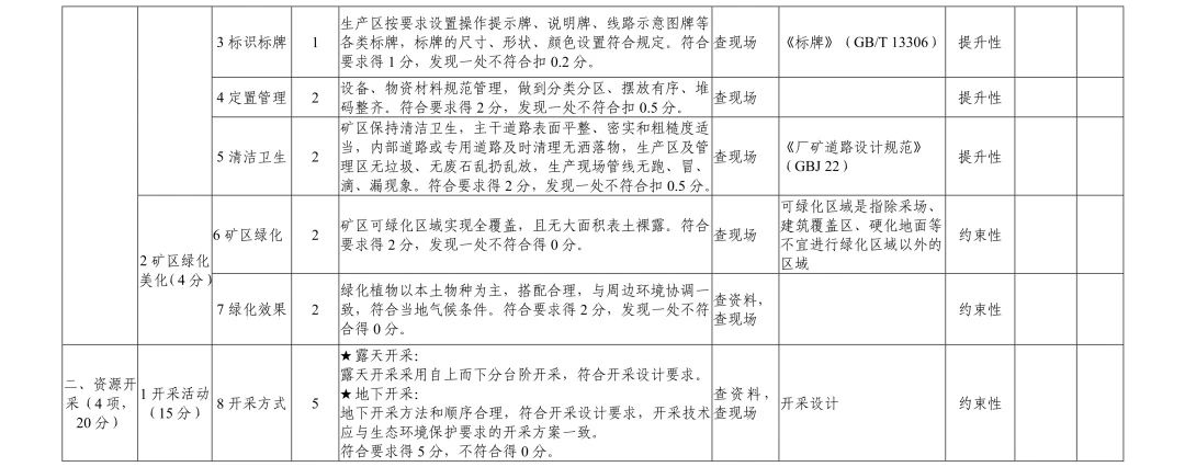 (二)內(nèi)業(yè)評(píng)估。評(píng)估組審核礦山企業(yè)提交的自評(píng)估報(bào)告等資料,對(duì)評(píng)價(jià)指標(biāo)先決條件進(jìn)行審定。相關(guān)內(nèi)容、材料缺失時(shí),通知礦山企業(yè)補(bǔ)充或重新提交。經(jīng)初步評(píng)估,討論確定現(xiàn)場(chǎng)評(píng)估重點(diǎn),告知礦山企業(yè)現(xiàn)場(chǎng)評(píng)估時(shí)間。