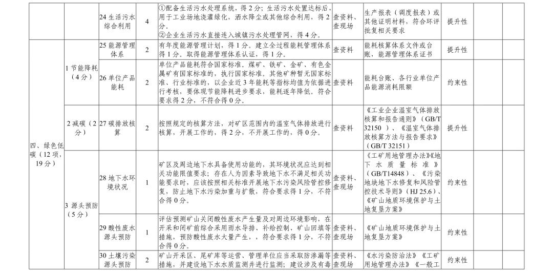 (四)編制報(bào)告。評(píng)估組綜合內(nèi)業(yè)評(píng)估、現(xiàn)場(chǎng)評(píng)估情況,討論確定評(píng)估結(jié)論,總結(jié)礦山企業(yè)建設(shè)工作亮點(diǎn),明確失分項(xiàng)及原因并提出改進(jìn)建議,填寫綠色礦山建設(shè)評(píng)分表,編制第三方評(píng)估報(bào)告,同時(shí)將綠色礦山建設(shè)評(píng)分表、評(píng)估組專家名單、評(píng)估會(huì)議簽到表、會(huì)議記錄、實(shí)地核查記錄、實(shí)景會(huì)議及現(xiàn)場(chǎng)核查影像資料等作為報(bào)告附件。