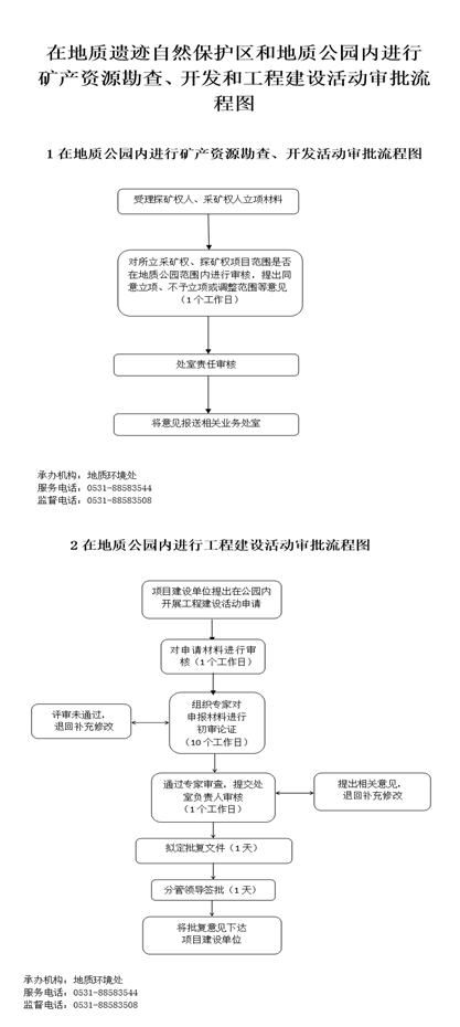 1.《國土資源部關(guān)于發(fā)布〈國家地質(zhì)公園規(guī)劃編制技術(shù)要求〉的通知》(2010年6月國土資發(fā)〔2010〕89號(hào))“要嚴(yán)格限制地質(zhì)公園內(nèi)的開發(fā)建設(shè)活動(dòng)……;保護(hù)區(qū)之外的園區(qū),可依據(jù)礦產(chǎn)資源規(guī)劃及當(dāng)?shù)厣鐣?huì)經(jīng)濟(jì)發(fā)展規(guī)劃等對地質(zhì)遺跡資源不會(huì)造成破壞或影響的礦產(chǎn)資源勘查、開發(fā)和工程建設(shè)活動(dòng),但需經(jīng)過省級(jí)以上國土資源行政主管部門批準(zhǔn)后才能進(jìn)行。”2.《山東省地質(zhì)環(huán)境保護(hù)條例》(2003年7月通過,2004年11月修正)第十八條:“建設(shè)項(xiàng)目應(yīng)當(dāng)避開地質(zhì)遺跡自然保護(hù)區(qū)和地質(zhì)公園;確實(shí)無法避開的,應(yīng)當(dāng)報(bào)經(jīng)該地質(zhì)遺跡自然保護(hù)區(qū)或者地質(zhì)公園的原批準(zhǔn)機(jī)關(guān)同意,并采取相應(yīng)的保護(hù)措施。原批準(zhǔn)機(jī)關(guān)應(yīng)當(dāng)按照國家關(guān)于保護(hù)地質(zhì)遺跡的規(guī)定和該地質(zhì)遺跡自然保護(hù)區(qū)或地質(zhì)公園的保護(hù)級(jí)別以及行政許可的程序規(guī)定,及時(shí)作出同意或者不同意的決定。”
